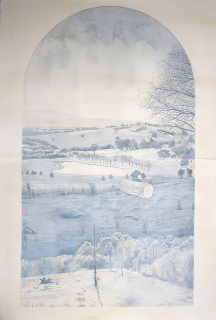 Split Landscape, Gesso, watercolour and ink on 300gsm rag paper, 76cm x 112 cm